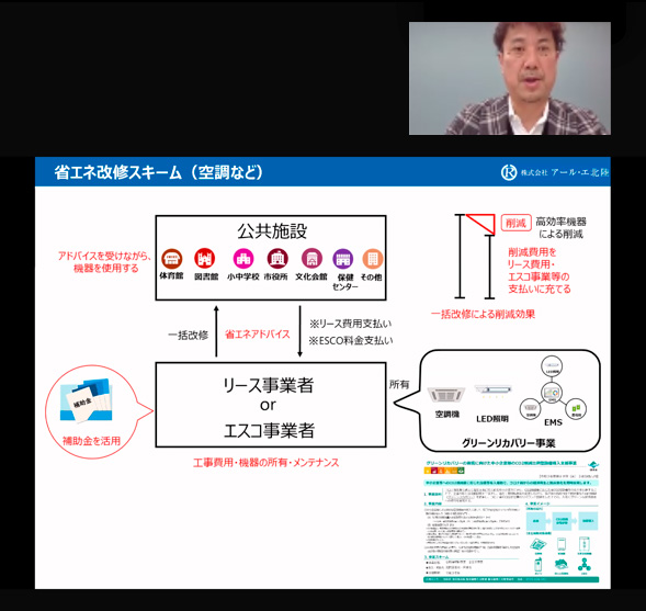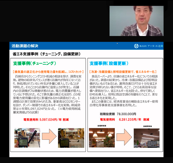 勉強会では地域間での経験・ノウハウの共有を行いました。地域に裨益する再エネ事業の設計と地域内外事業者との調整・連携方法、個別事業のノウハウについて各事業者から説明を行い、意見交換をしました。高澤は省エネ事業のノウハウについて説明し、特に地域でのエネルギー診断の実施については、質問も多く、関心が高いと感じました。