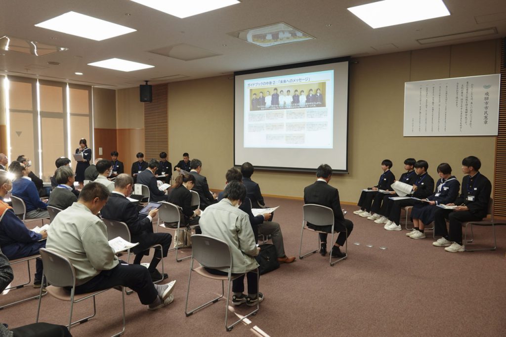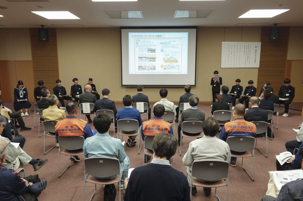 10月27日(月)、飛騨市役所にて「古川中学校マイプロジェクト×環境課連携事業『市内に脱炭素を普及しよう』成果報告会」ならびに市職員向けの「ゼロカーボンアクション研修会」が開催されました。