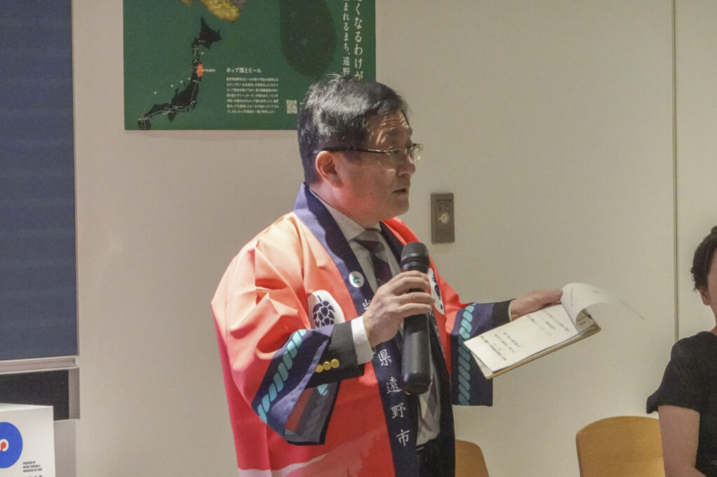 本イベントは「Tono to the Future|遠野のこれからを、乾杯から始めよう。」と題し、多田一彦 遠野市長をはじめとした市職員から市の紹介や今後実施する制度に関する解説が行われました。